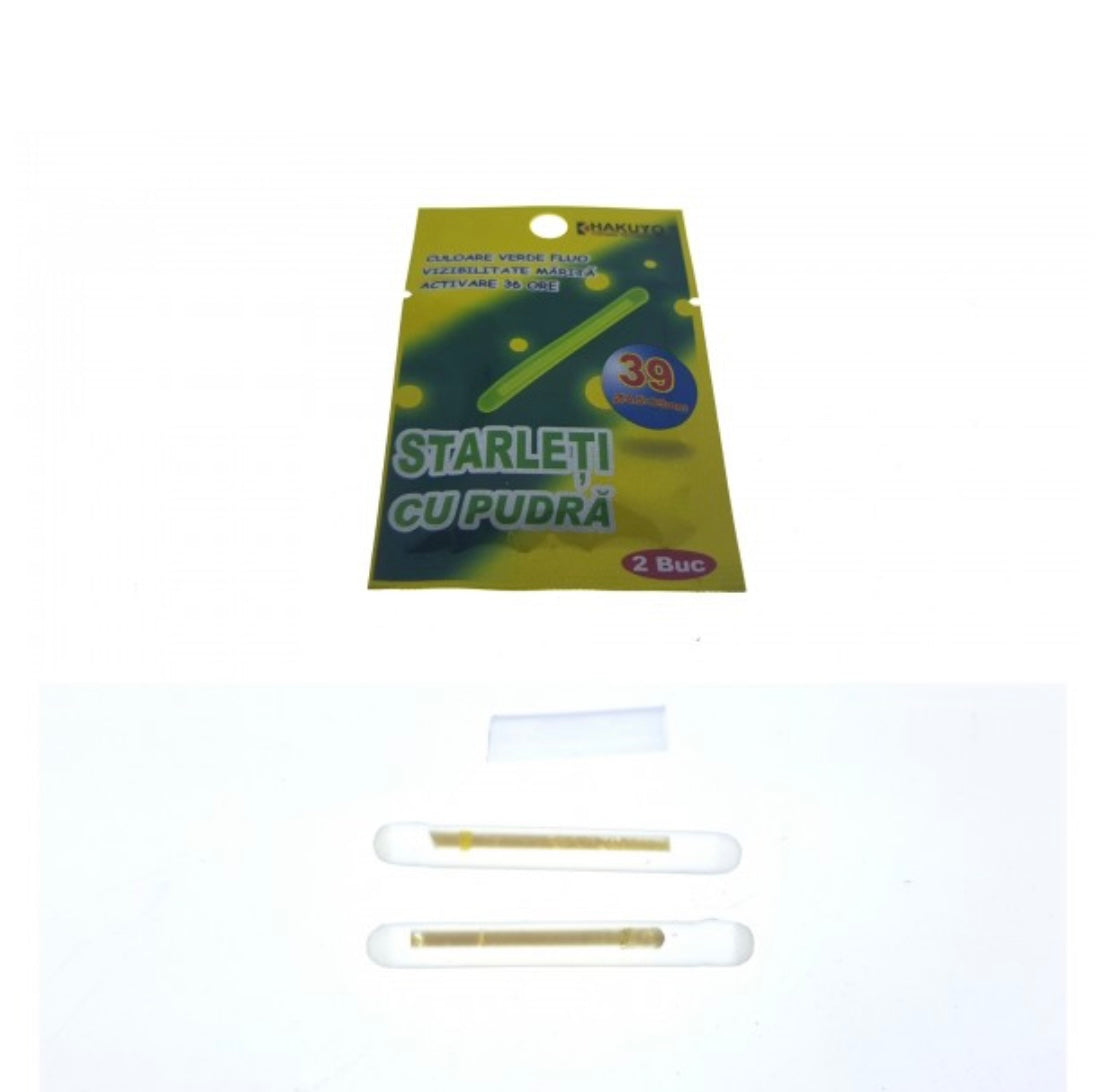 Starleti pe baza de praf.Lumina produsa este vizibila minimum 24 de ore dupa activare.